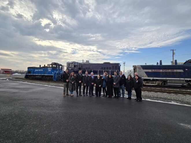Albany Port Railroad has celebrated the arrival of its newest locomotive #2502 with NYS Department of Transportation Commissioner Marie Therese Dominguez and dignitaries from throughout